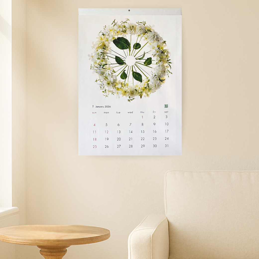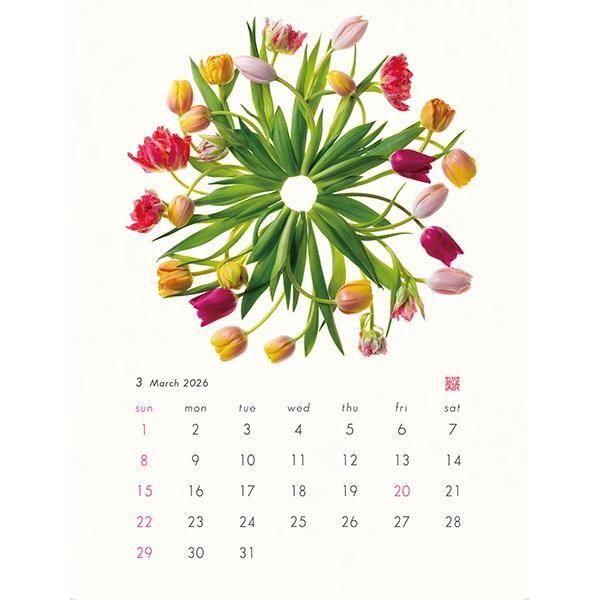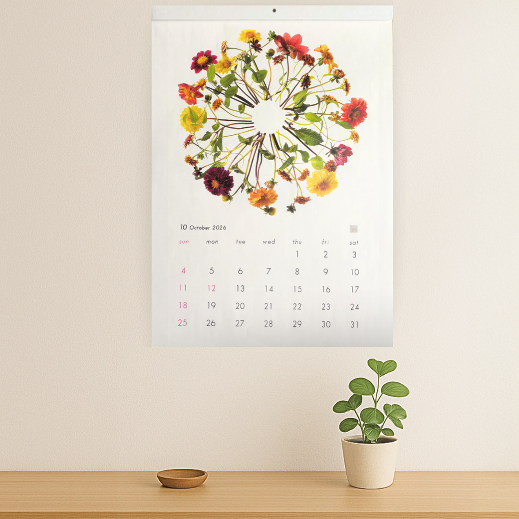 日本を代表するフラワーアーティスト・川崎景太による「花グラフィックアートカレンダー」は、季節の花々を独自の視点と構成でとらえた、アート作品のようなカレンダーです。